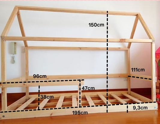 Cama Montessori Ana tipo Casita en Madera | Plaza y Media