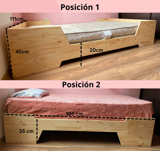 Cama Montessori Minimalista y Evolutiva Modelo "Fabiana" Plaza, plaza y media y dos plazas