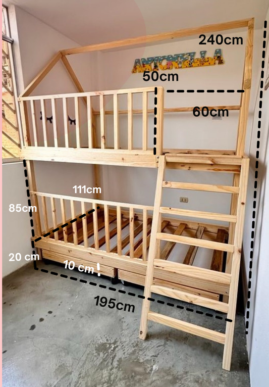 Camarote Montessori Casita Sussi con Cajonera | Ideal para Hermanos – Plaza y Media