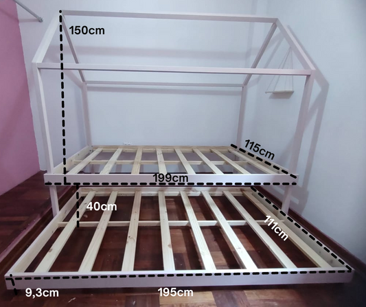 Cama Casa Montessori Gemelar Partner con Cama Auxiliar | Plaza, Plaza y Media y Dos Plazas