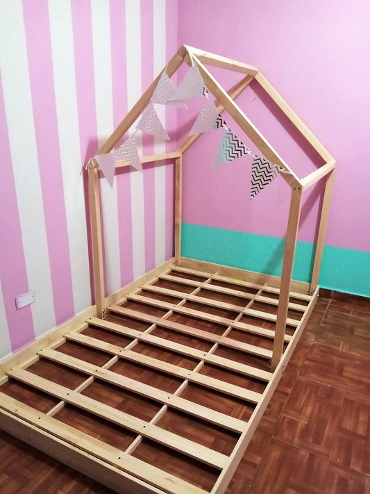 Cama casa Montessori Modelo "Sara" Plaza, plaza y media y dos plazas