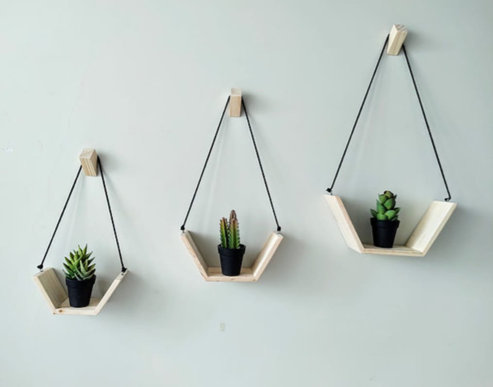 Añade un toque único y sofisticado a tu hogar con la repisa colgante Diamond. Su diseño geométrico en forma de diamante, fabricada con madera de pino de alta calidad, crea una pieza decorativa y funcional que destaca en cualquier espacio. Perfecta para exhibir tus plantas, libros, objetos decorativos o cualquier detalle que desees resaltar, esta repisa aporta estilo y modernidad a tu hogar u oficina.