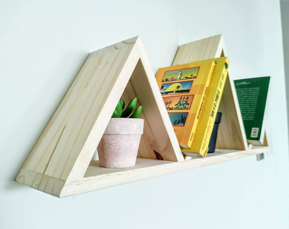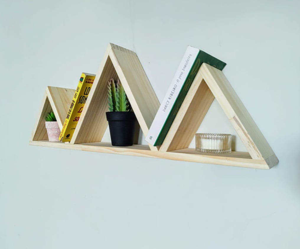 La repisa montaña es perfecta para agregar un toque de naturaleza y dinamismo a salas, dormitorios, oficinas o cualquier rincón que necesite un detalle distintivo. La calidez del pino, sumada a su diseño geométrico, aporta una sensación de armonía y frescura en cualquier ambiente.